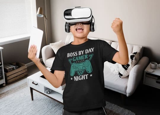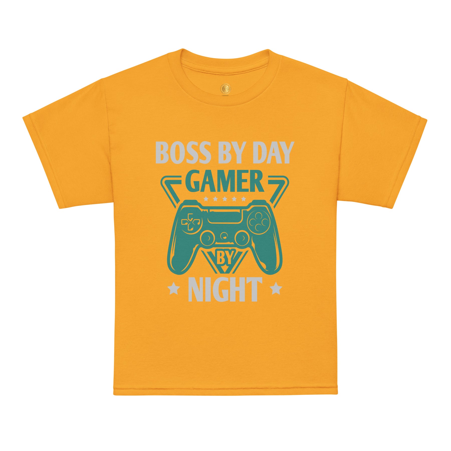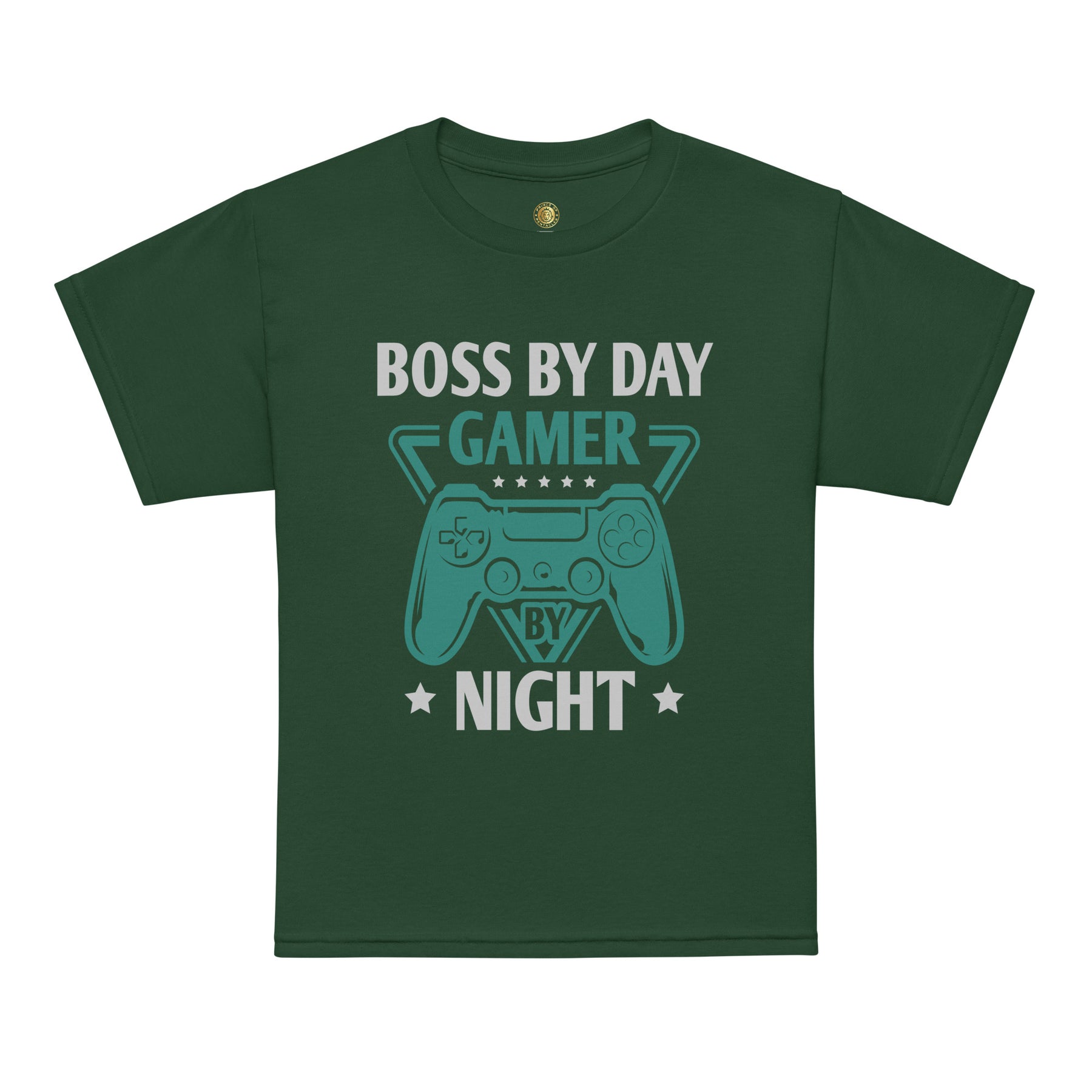 Boss by Day Gamer by Night Boys Graphic Tee | Kids Gaming Shirt